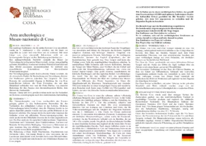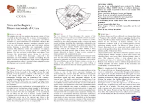 Le Mappe dei Parchi Archeologici della Maremma Mappa del Museo e Parco archeologico di Cosa Museo archeologico di Cosa · Parco archeologico di Cosa Condividi Disponibili in questa pagina le mappe del Museo e Parco archeologico di Cosa ITALIANO ENGLISH FRANÇAIS DEUTSCH