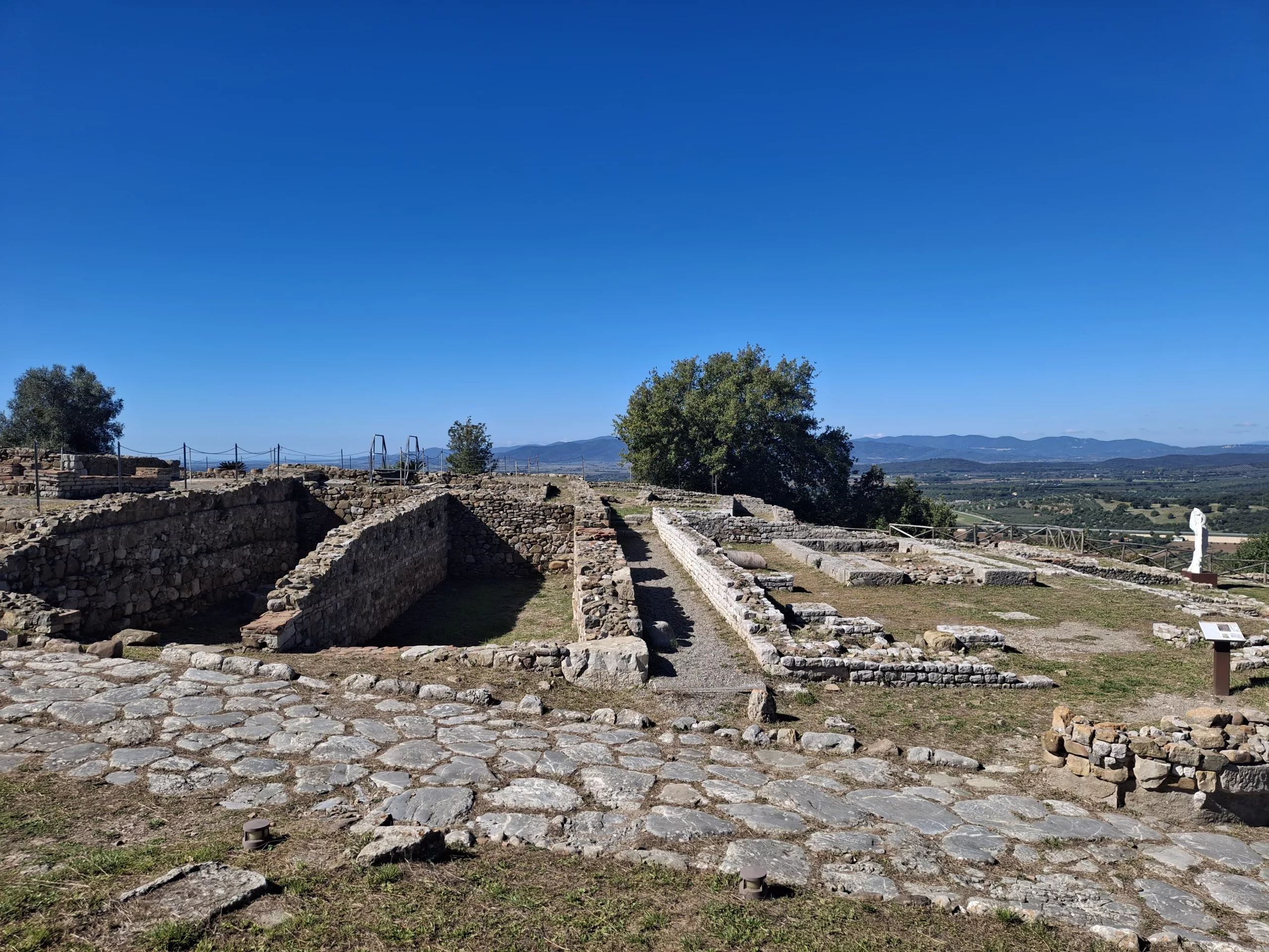 Accanto al tempietto si apre la Domus dei mosaici, abitazione d’età tardo-repubblicana poi ampliata. Si articola in vestibolo, atrio con impluvium (vasca per la raccolta di acque piovane), alae (ambienti laterali) e tablinum (sala principale) decorato da un mosaico geometrico. Sul retro si estende il peristilio affacciato sulla vallata, concluso da una cisterna. In età tiberiano-claudia fu aggiunto un settore termale con frigidarium, tepidarium, calidarium e laconicum. Pavimenti a mosaico, opus sectile (muro con pietre a intarsio) e mattoni bipedali testimoniano il lusso della residenza, da cui provengono ritratti marmorei di Agrippina Maggiore, Tiberio e Druso Minore. Tra terzo e quarto secolo l’edificio ospitò un’officina di fabbro, favorita dall’impianto idrico preesistente.