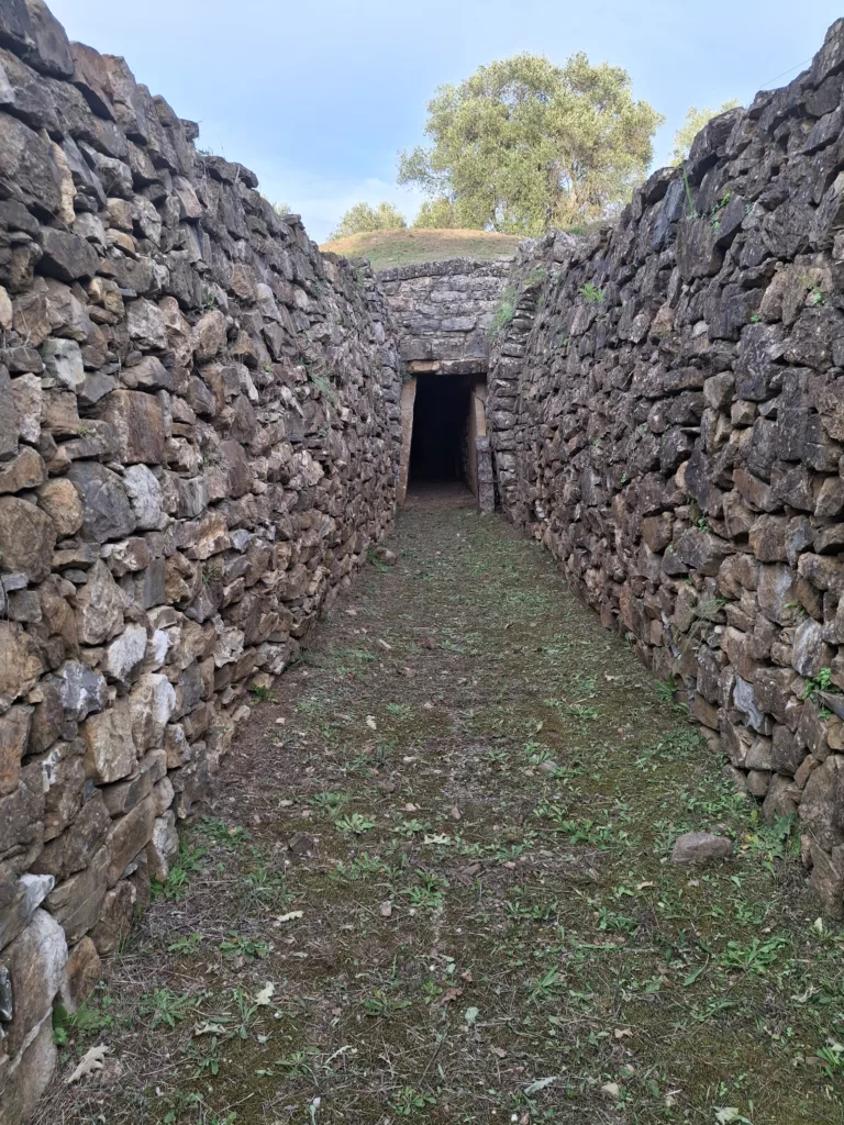 Posta sulla Via dei Sepolcri, a circa 600 metri di distanza dalla Tomba della Pietrera, si trova la Tomba del Diavolino II, altro grandioso monumento funebre del Parco archeologico di Vetulonia, noto anche come Tomba del Pozzo dell’Abate. La struttura, considerata uno dei sepolcri più importanti della geografia funeraria etrusca, si trova leggermente in basso rispetto al piano stradale e consiste in un imponente tumulo di circa 60 metri di diametro, cui si accede mediante un lungo dromos a cielo aperto nel primo tratto, al cui termine è posta la porta di accesso dell’unica camera sepolcrale. Il cumulo di terra è delimitato da un triplice filare di pietre squadrate che formano un tamburo circolare posto attorno alla Tomba stessa. Percorrendo dunque il lungo e stretto dromos si viene condotti alla porta ad architrave che chiudeva l’accesso al corridoio coperto, mentre la camera sepolcrale, di forma quadrangolare, è stata raccordata alla volta della falsa cupola di copertura tramite la tecnica dell’inserimento di pennacchi angolari. Esempio fra più rappresentativi della sua tipologia, e, come la Pietrera, tra più grandi tumuli rinvenuti in Etruria, il sepolcro venne esplorato una prima volta nel 1884, quando venne messo in luce un breve tratto del tamburo, per poi venire nuovamente scavato nel 1903, quando venne liberata la camera centrale e recuperato qualche frammento del corredo funerario. Il pilastro centrale posto a sorreggere la volta è stato ricostruito intorno al 1980 con materiale plastico.